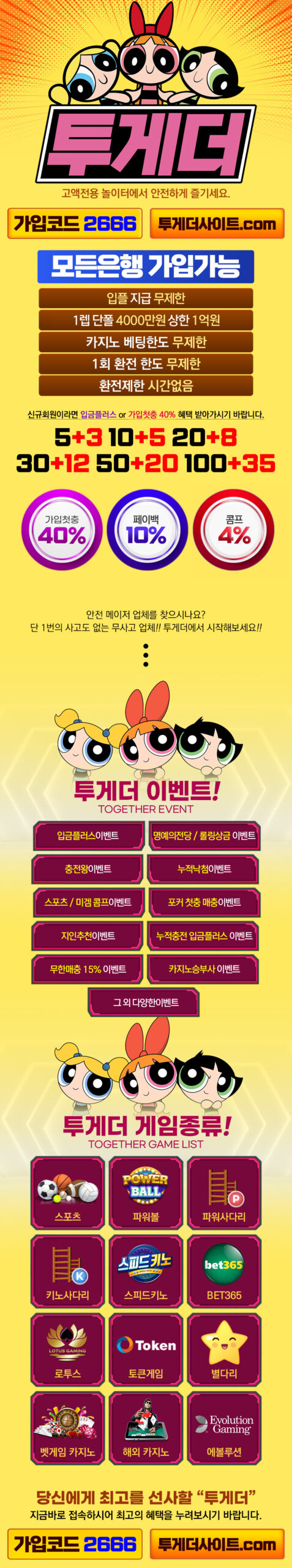 투게더토토와 함께라면 안전성과 신뢰를 기반으로 한 즐겁고 만족스러운 게임 환경을 경험하실 수 있습니다. 지금 바로 차별화된 이용 경험을 만나보시기 바랍니다. 감사합니다.